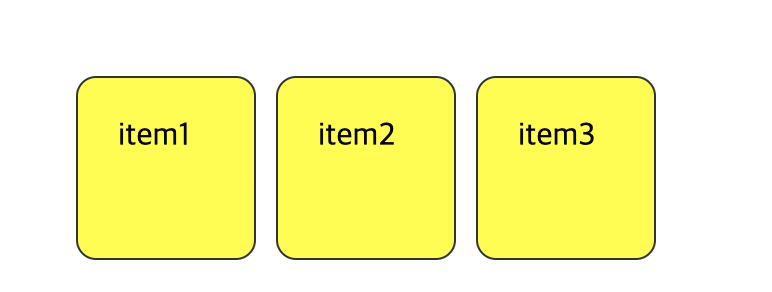 .container { width: 300px; display: flex; flex-wrap: nowrap; } .items { width: 50px; height: 50px; background-color: yellow; border: 1px solid #333; border-radius: 10px; margin: 0 10px 10px 0; }