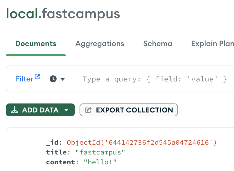 brew services list MongoDB Compass로 컬렉션 추가하는 등 다양한 데이터 관리를 할 수 있지만, 터미널에서도 할 수 있다.